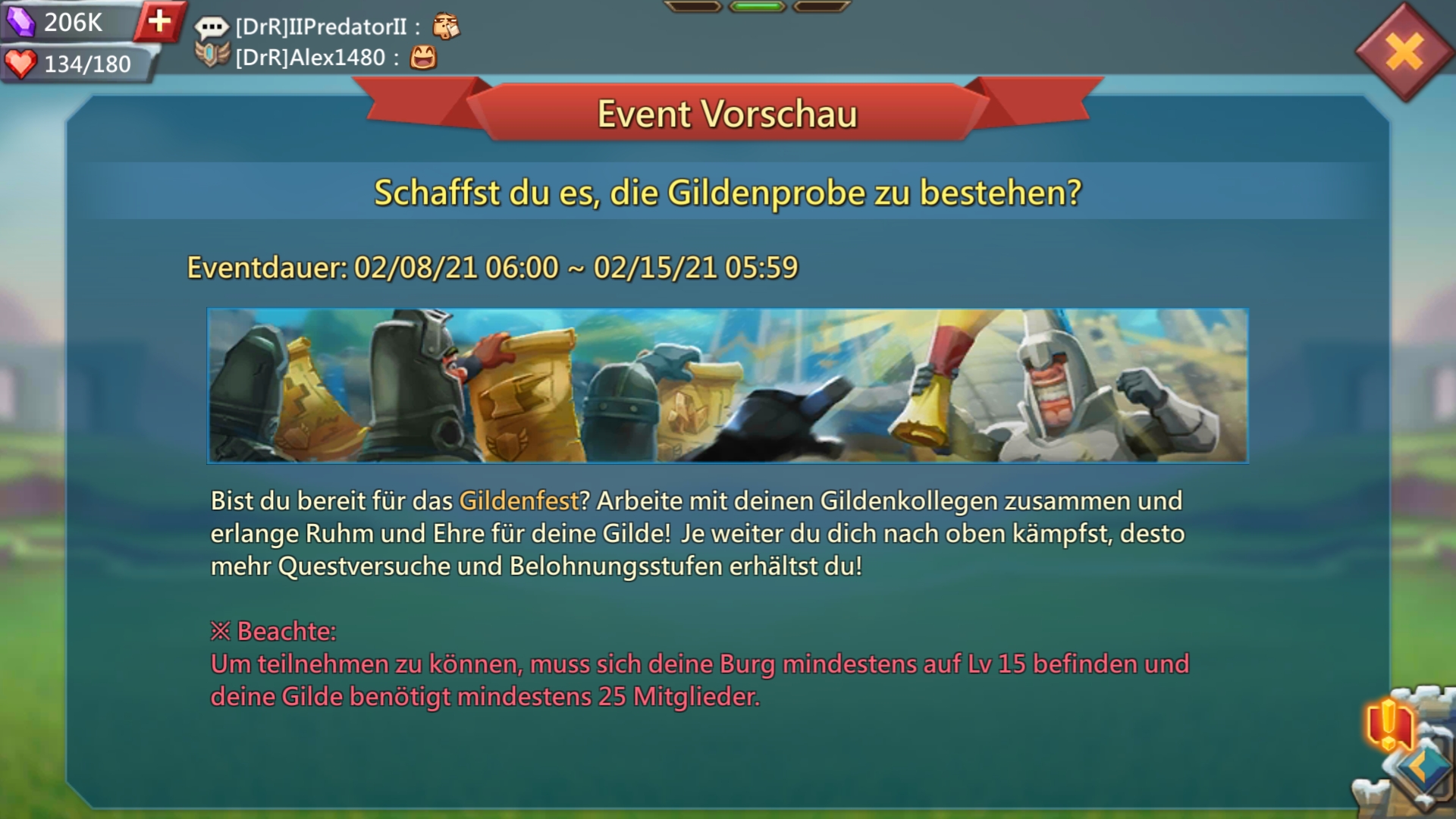 Wie auch immer, in Lords Mobile werden beide Bezeichnungen verwendet, wir verwenden vorzugweise die Bezeichnung Gilden Event, was auch oft einfach mit GE abgekürzt wird.