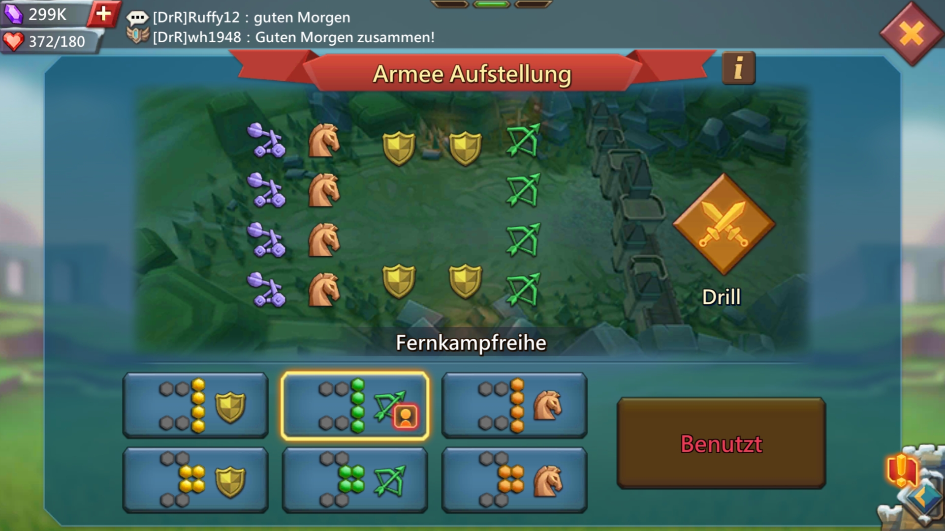Beim Showdown ist es am besten die Aufstellung entsprechend der gesendeten Truppen zu wählen.